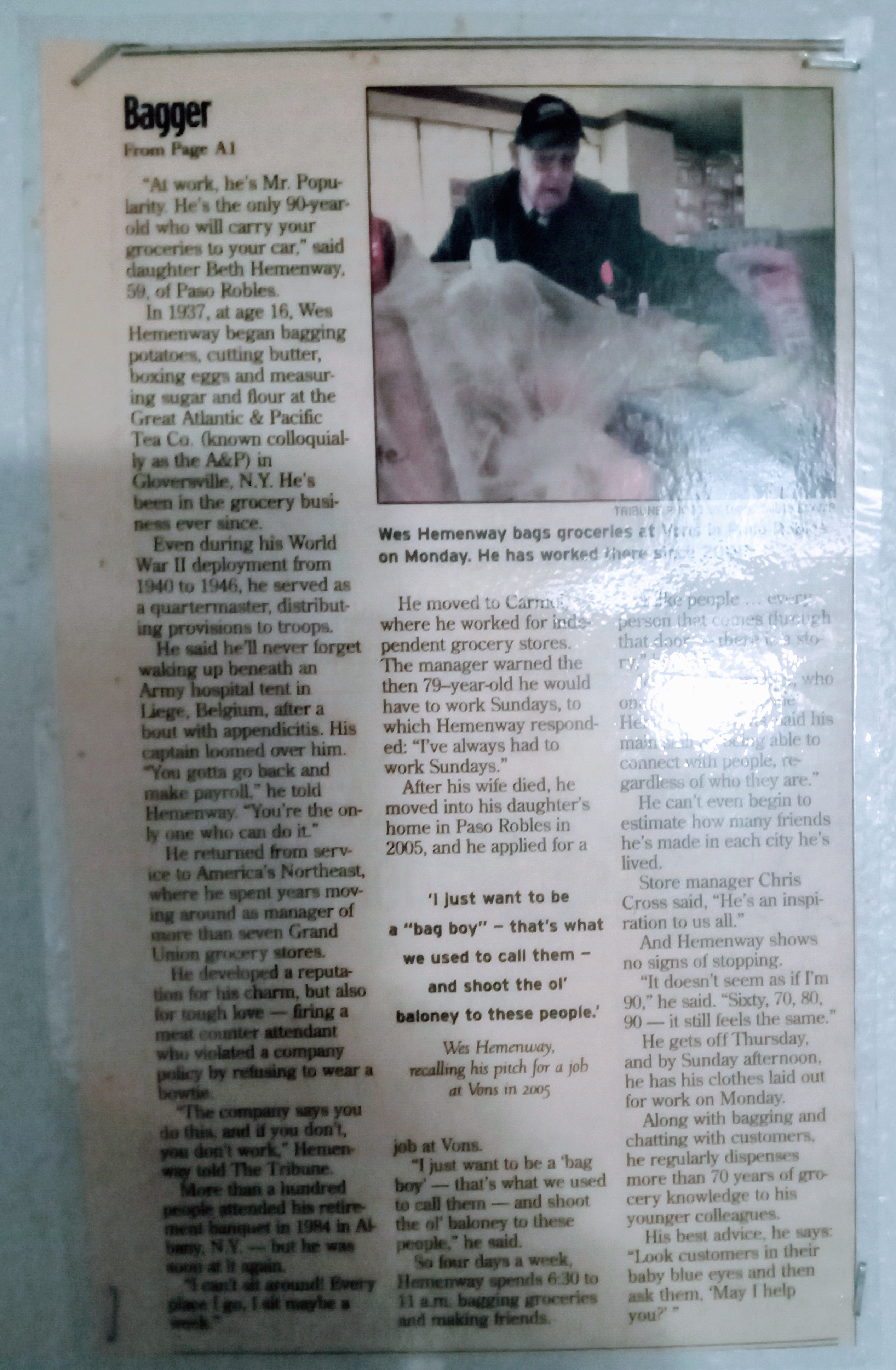 Romaine heart leaves in a bag,